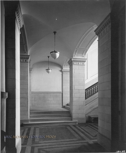 Smith Memorial Music Hall Entry Hall and Bottom of Stairway | University of Illinois Archives