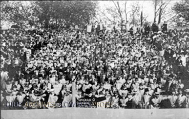 Spectators look on as Illinois defeats Chicago 3 - 0 in the first homecoming game played at Illinois. This game was played at Illinois Field.