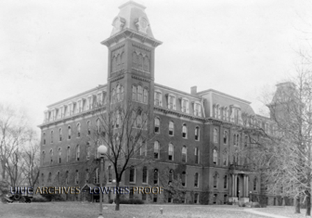 View from the northeast of University Hall at the University of Illinois, showing the details of the front of the building.