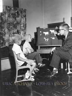 Caption on back reads: "Use of flannel board for identification of animals with sounds."