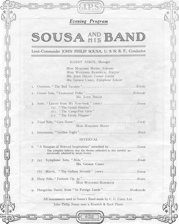 Item 66: Sousa Band Souvenir Concert Program (page 8), 1922Creators: