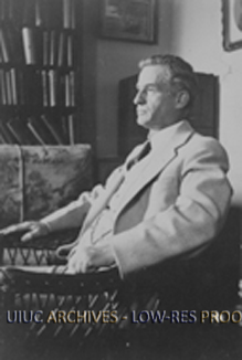 James Garfield Randall, University of Illinois Professor of History (1920-1950) is photographed sitting in a chair.
