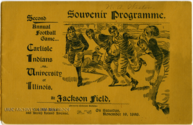 Cover of the program for the match between the University of Illinois and the Carlisle Indians at Jackson Field in Chicago. Illinois lost 0-11.