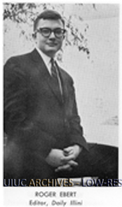 Illio yearbook photo of Roger Ebert from his time as Editor of the Daily Illini.