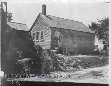 View of the entrance to the Butler School in Springvale, Maine, which, according to the caption was Nathan Ricker's last school. This image was taken during N.C. Ricker's trip to Maine, his boyhood home, in 1903.