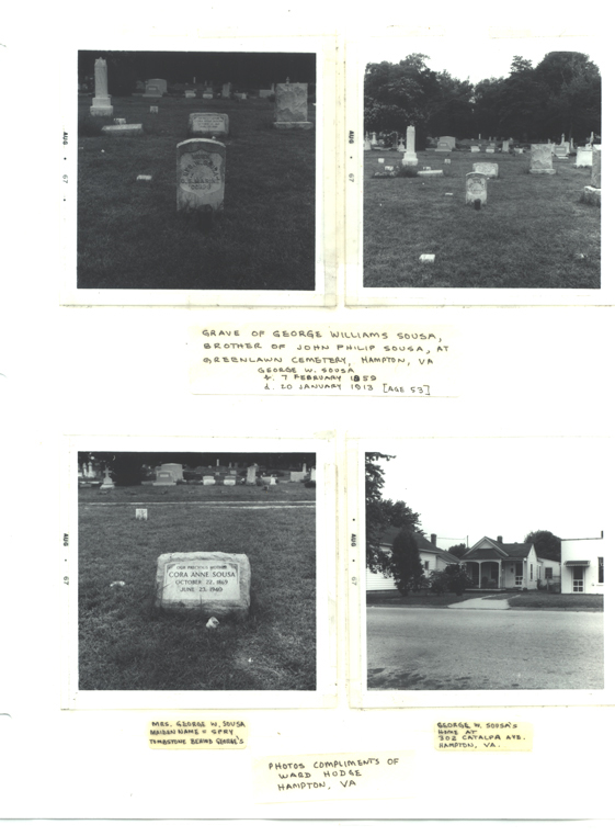 Digital File 27: Grave marker for George Williams Sousa (brother of John Philip Sousa), Hampton, VA, 1913