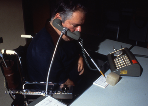 Wheelchair-bound Man Uses Phone and Takes Notes | University of Illinois Archives