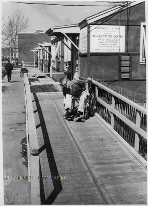 Man on ramp outside rehabilitation center | University of Illinois Archives
