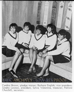 Five members of the Alpha Kappa Alpha Sorority at the University of Illinois, including president, vice president, secretary, pledge trainer and treasurer.