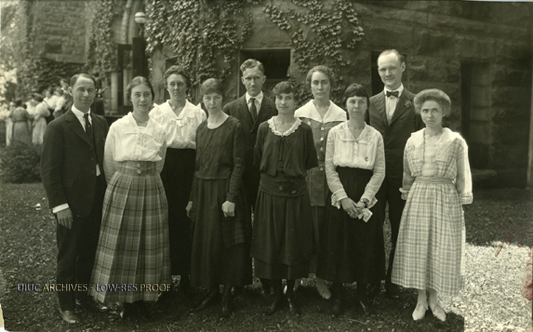 Group photo of members of the 1921 Senior Class of the Library School at the University of Illinois. Found in RS: 39/2/20, Box COL - 8, Folder COL - 8 Library Sciences 1918-1922