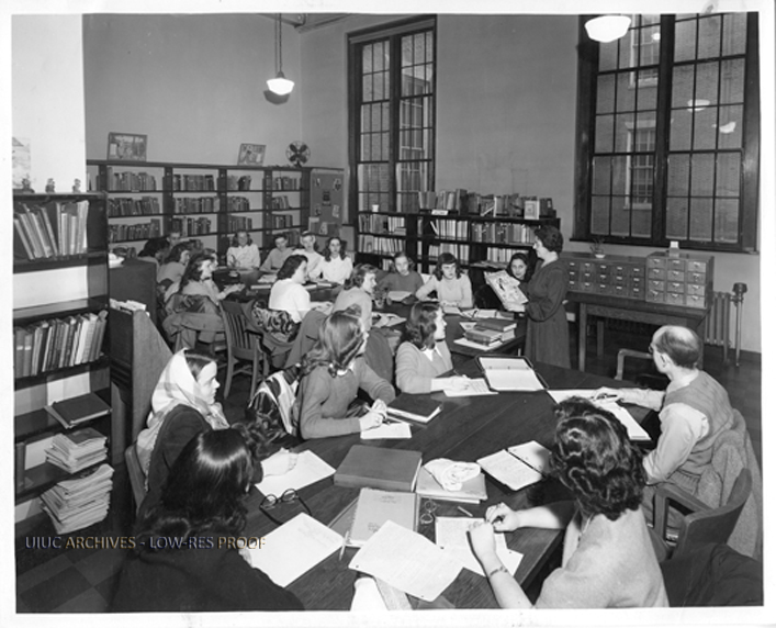 Marie M. Hostetler & class, University of Illinois Library School. Found in RS: 39/2/20, Box COL - 8 (1940-), Folder COL - 8 Library Sciences 1940-45.