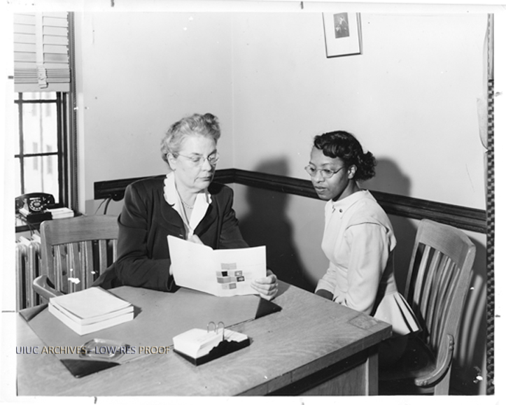 Instructor advising library school student | University of Illinois Archives