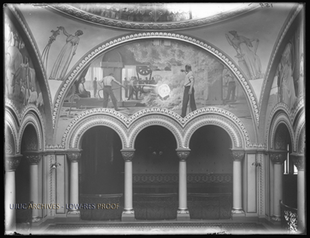 Altgeld Hall reception Hall mural by Newton A. Wells depicting a scene devoted to engineering.