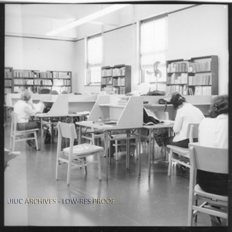 View of study carrels in the Library and Information Sciences Library at the University of Illinois.