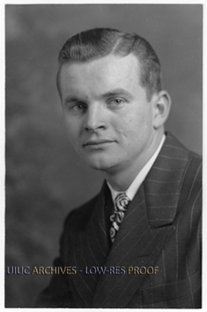 Portrait of Donald Eugene Becker (B.S.; M.S., 1945; 1947) , graduate student in animal science at the University who later went on to become a faculty member and head of the Animal Science Department.