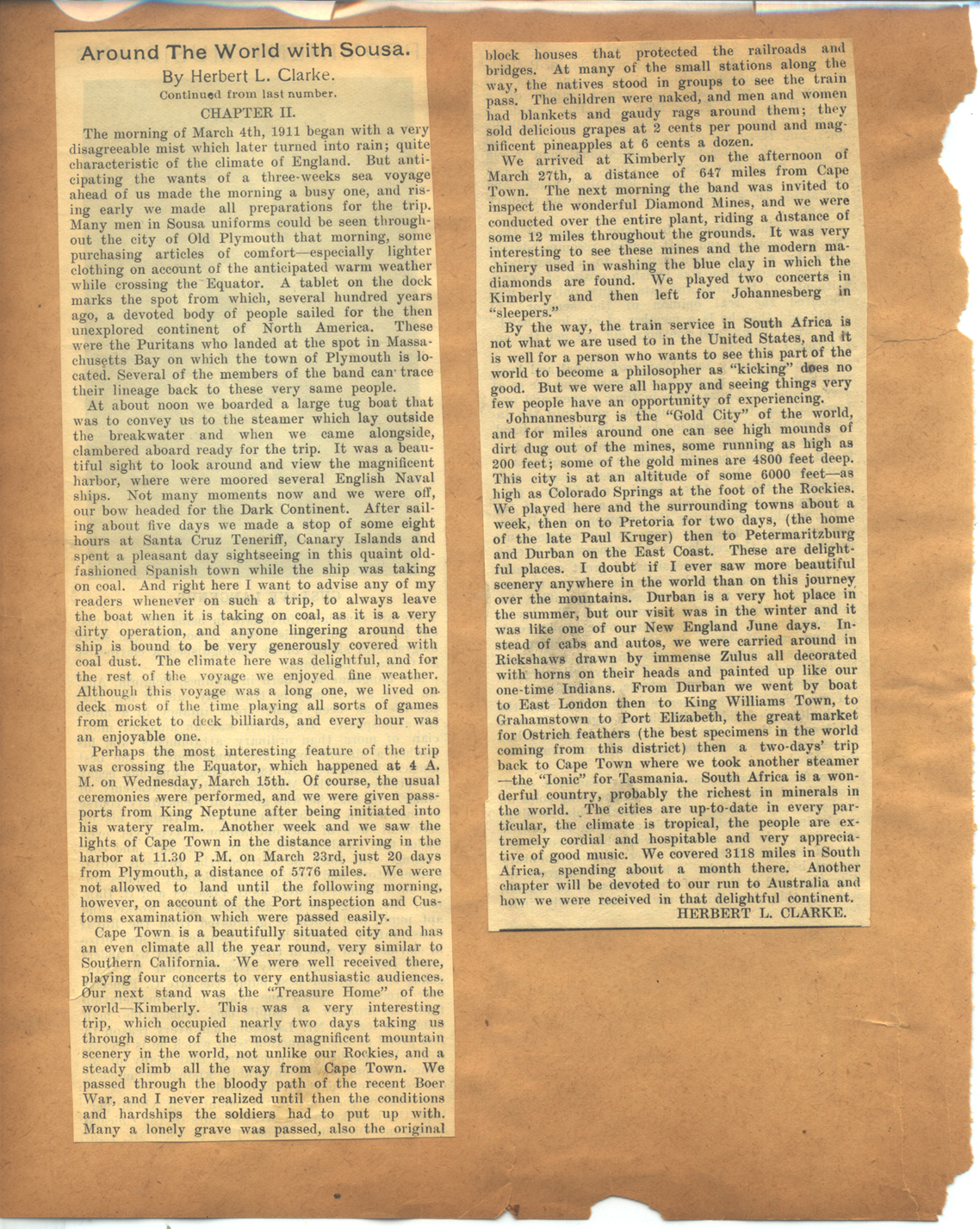 ScrapbookPage 3: Around the World with Sousa, by Herbert L. Clarke, Chapter 2, 1916