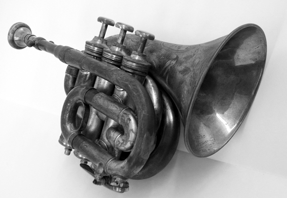 Henry Diston pocket cornet won by Herbert L. Clarke - angle view | The Sousa Archives and Center for American Music