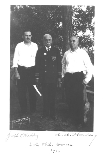 John Philip Sousa, with Joseph Maddy and A. A. Harding. Interlochen, Michigan