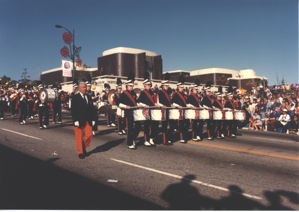 Begian marching alongside the Marching Illini at the Parade of Roses | The Sousa Archives and Center for American Music