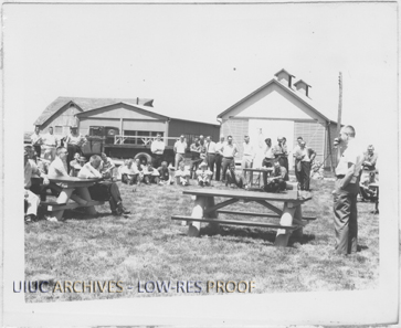 Group of Men Listening to Speaker Outside | University of Illinois Archives