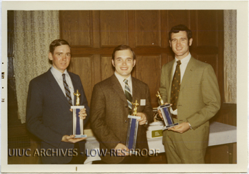 Caption accompanying photo reads, The three local speech contest winners are from L to R: Jim Joyce, 2nd place; Jim Broderick, 1st place; and Dave Mies, 3rd place.