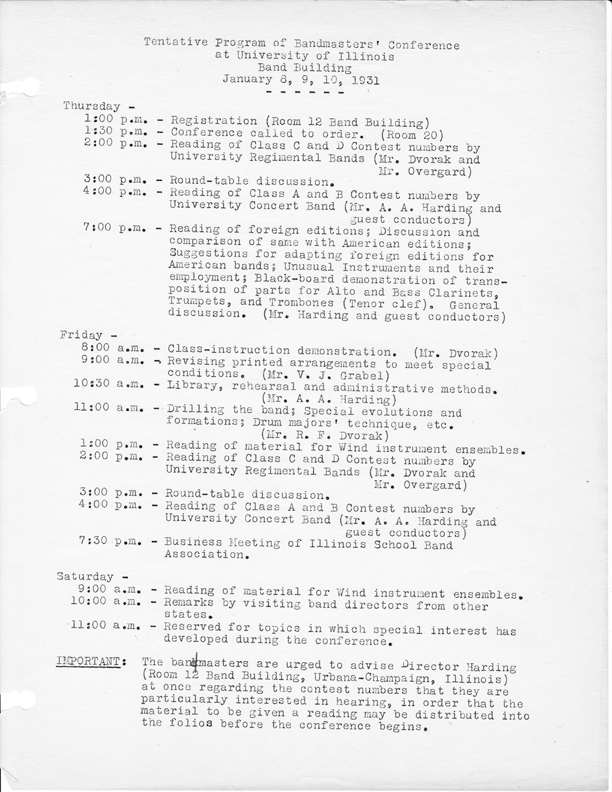 Tentative Program for American Bandmaster's Association Meeting at University of Illinois | The Sousa Archives and Center for American Music