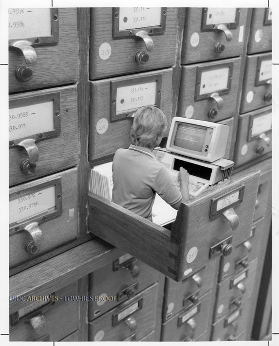 Woman on Computer in Card Catalog | University of Illinois Archives