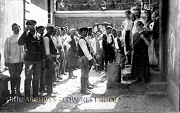 Men Receiving Food at POW Center