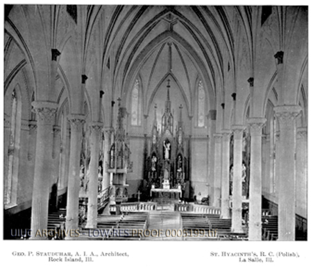 Photographic Image of Interior of St. Hyacinth's Polish Roman Catholic Church in La Salle, Il, designed by George P. Stauduhar, architect of Rock Island, IL.