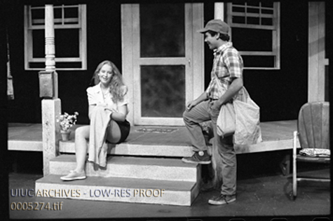 Image of Madge Owens and Bomber Gutzin (played by Susan Knight and David Van Matre) from William Inge's Picnic, a show at the Krannert Center for the Performing Arts.