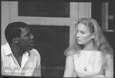 Image of Hal Carter and Madge Owens (Eric Pierson and Susan Knight) from William Inge's Picnic, a show at the Krannert Center for the Performing Arts.