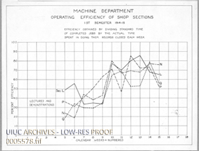 Graph showing Operating Efficiency in Machine Shop Sections | University of Illinois Archives