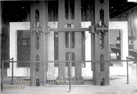Test of Reinforced Concrete Frame in 600,000 Pound Testing Machine | University of Illinois Archives