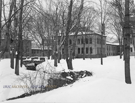 Winter scene of Boneyard Creek | University of Illinois Archives