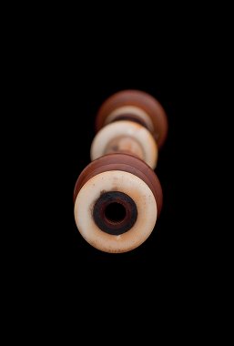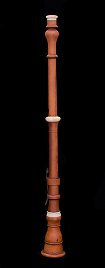 wooden, with open tone holes and ivory ferrules.