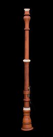 wooden, with open tone holes and ivory ferrules.
