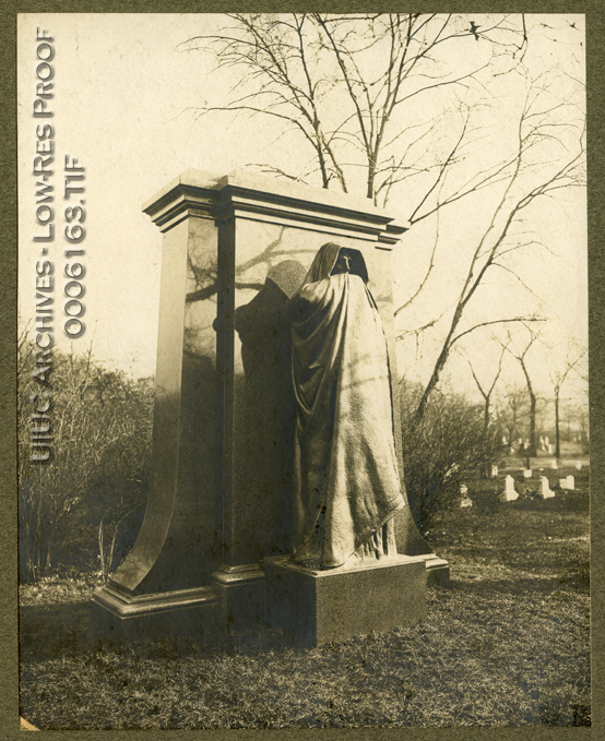 Photograph of Lorado Taft's sculpture The Eternal Silence, monument to Henry T. Graves, Graceland Cemetery, Chicago, IL