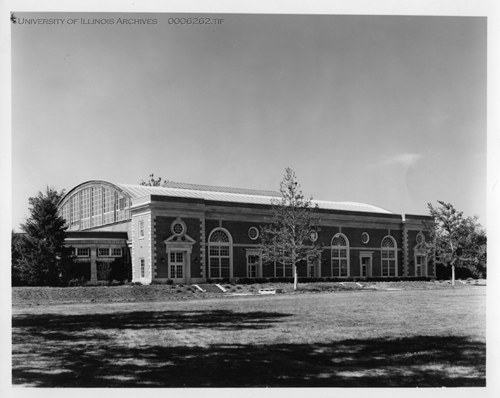 Photograph of UIUC Stock Pavilion, taken sometime after the facade renovation in 1958.