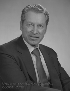 Photo portrait of Hiram Gene Slottow (1921- ), professor of electrical engineering (1968-86) and engineer with the Coordinated Sciences Laboratory and the Computer-Based Education Research Laboratory (1968-1986).