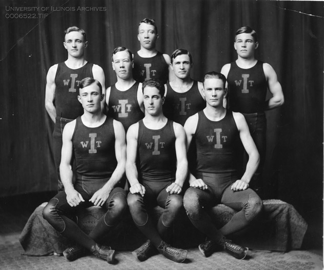 Photograph of the 1912 Varsity Wrestling team. (Previously published in 1914 Illio)