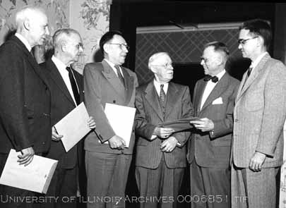 From left to right: W. H. Raynore, C. C. Wiley, Eugene F. Mail (U of I CE Grad), J. O. Draffin, T. E. Shedd, and Walter Hansen.