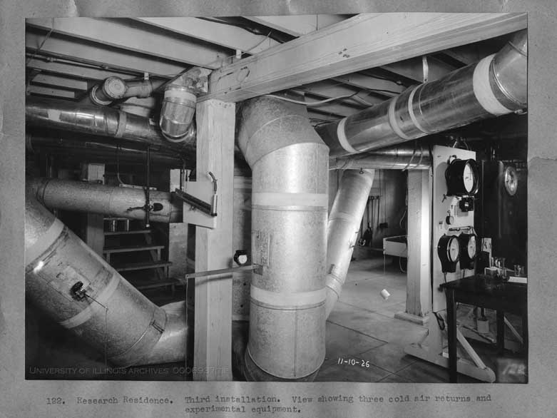"Research Residence. Third Installation. View showing three cold air returns and experimental equipment."