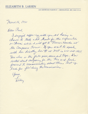 Libby Larsen letter to Paul Martin Zonn