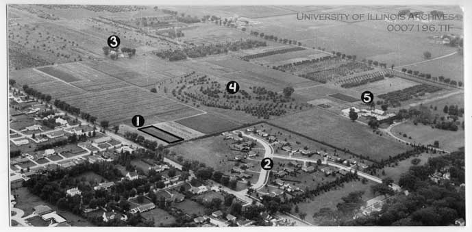 Black and white photograph of Orchard Downs from an aerial view. Orchard Downs is primarily married student housing.