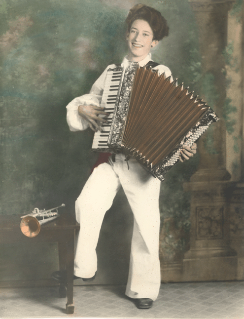 Folder 4: Claude Gordon at age 16, Playing accordion, 1932