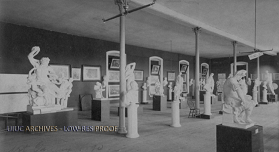 Gallery space in University Hall filled with cast reproductions of classical sculpture.