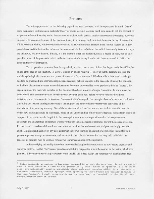 Folder 85: Toward a Theory of Music Instruction: A Generative Approach to Music Learning, unpublished book, 1997